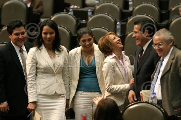 MÉXICO, D.F., 08MARZO2007.- Los diputados panistas Manuel Minjarez, Esmeralda Hernández, Dora Alicia Martínez, Elia Hernández, Diodoro Carrasco y Juan José Rodríguez Prats, durante la sesión en la Cámara de Diputados. FOTO: MOISÉS PABLO/CUARTOSCURO.COM