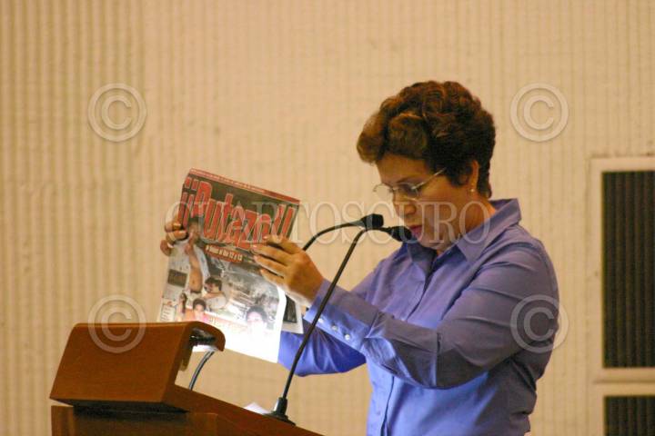 Villahermosa, Tabasco, 08MARZO2005.- Dora María Scherrer, diputada panista, presentó un punto de acuerdo a los poderes ejecutivos y judicial, con el fin de buscar mecanismos para regular las publicaciones en los medios impresos de cuerpos sin vida, mutilados, arrollados o golpeados. FOTO: Marco Polo Guzman/CUARTOSCURO.COM