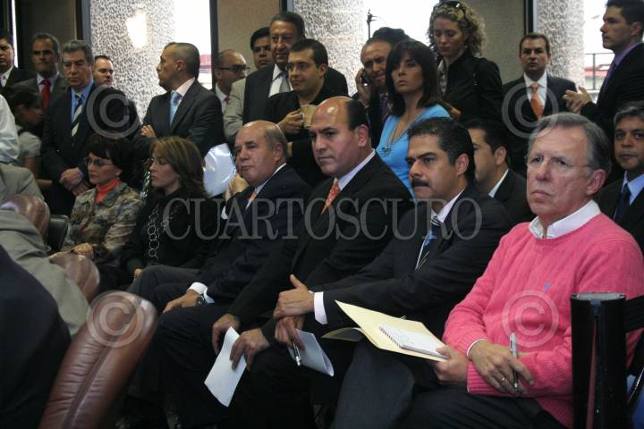 MÉXICO, D.F. 11SEPTIEMBRE2007.- Los periodistas Joaquín López Dóriga y Javier Alatorre durante la sesión en la Cámara de senadores, donde se discute la Reforma Electoral. FOTO: ISAAC ESQUIVEL/CUARTOSCURO.COM
