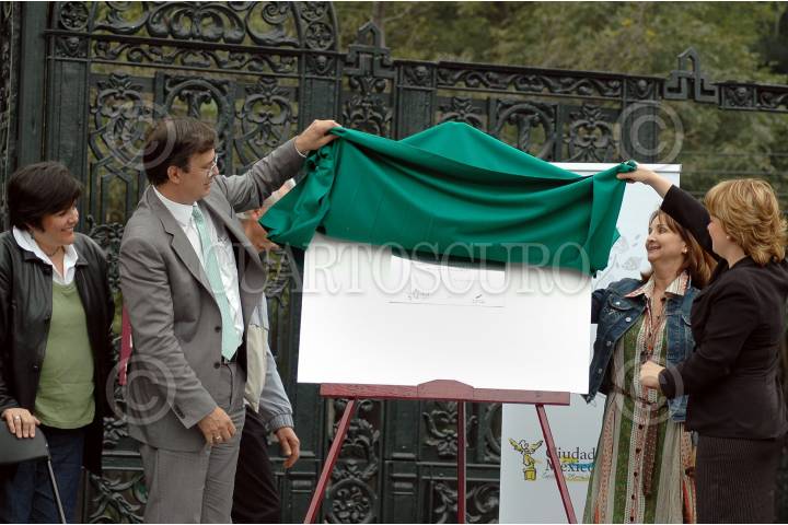 MÉXICO D.F., 22NOVIEMBRE2007.- Rosa Maria Gomez directora del Bosque de Chapultpec, el jefe de gobierno capitalino Marcelo Ebard, Adriana Perez Romo de Lopez Doriga y la secretaria del medio ambiente Martha Delgado durante la develación de la placa por los Cien Años del Bosque de Chapultepec. FOTO: RODOLFO ANGULO/CUARTOSCURO.COM