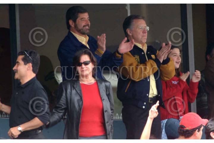 México, D. F. 25ENE2004.- Joaquín López Dóriga y Juan Ramón de la Fuente estuvieron presentes en el encuentro entre los Pumas de la UNAM y Atlas en el estadio de C. U. FOTO: Iván Stephens/CUARTOSCURO.COM