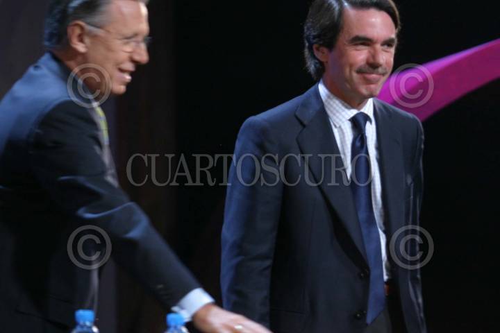 SAN LUIS POTOSI, SAN LUIS POTOSI14MARZO2005.- El periodista Joaquín López Dóriga y el expresidente de España José María Aznar. Quienes participan en el primer dia de Espacio 2005, Encuentro de Jovenes Universitarios. FOTO: Nelly Salas/CUARTOSCURO.COM
