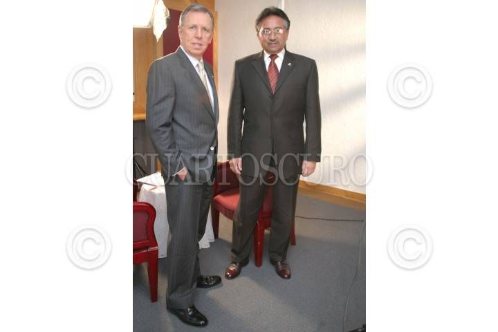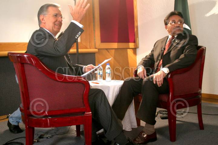 MEXICO D.F 03 DICIEMBRE 2004.- Pervez Musharraf, presidente de la república Islamica de Pakistan, durante su entrevista con el periodista Joaquín López Doriga. FOTO: Eunice Adorno/CUARTOSCURO.COM