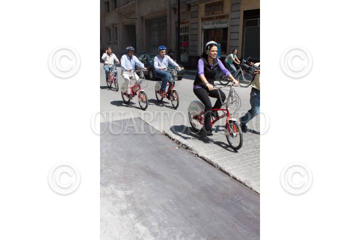 MÉXICO, D.F., 19JULIO2011.- Los diputados panistas Mariana Gómez del Campos y Fernando Rodríguez Doval realizaron un recorrido en Ecobici para constatar la problemática a la que se enfrentan los ciclistas por los daños que han sufrido el pavimento producto de una serie de obras que se llevan a cabo en el primer cuadro de la ciudad. FOTO: MOISÉS PABLO/CUARTOSCURO.COM