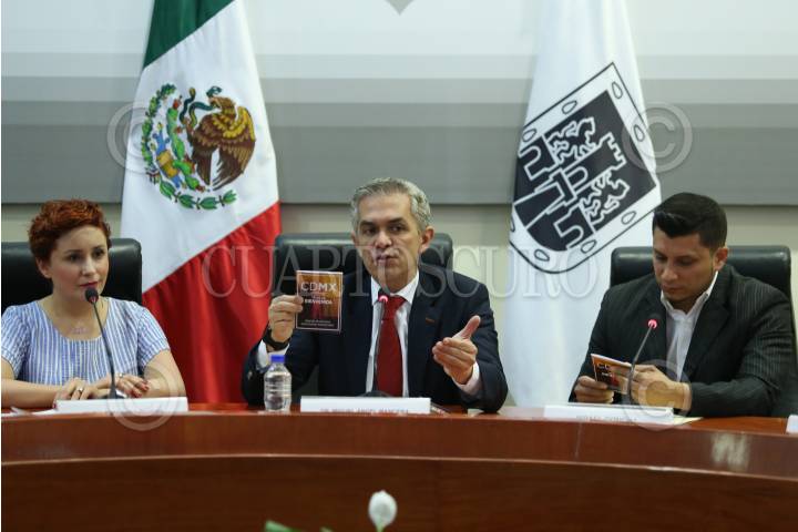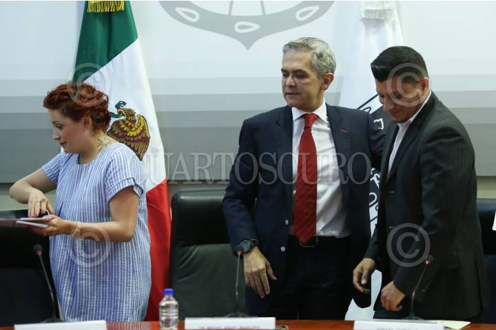 CIUDAD DE MÉXICO, 31JULIO2017.- María Fernanda Olvera, secretaria general del Instituto de la Juventud, Miguel Ángel Mancera, jefe de gobierno de la Ciudad de México e Israel Concha, "dreamer" mexicano, durante la presentación de la "Agenda de Servicios para Jóvenes Binacionales, CDMX te da la bienvenida", medida que pretende dar opciones para concluir bachillerato, solicitar servicios de salud, seguro de desempleo, becas, capacitación para el trabajo y programas sociales para "dreamers" que son deportados de los Estados Unidos. FOTO: ADOLFO VLADIMIR /CUARTOSCURO.COM