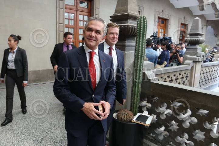CIUDAD DE MÉXICO, 31JULIO2017.- Miguel Ángel Mancera, jefe de gobierno de la Ciudad de México e Israel Concha, "dreamer" mexicano, durante la presentación de la "Agenda de Servicios para Jóvenes Binacionales, CDMX te da la bienvenida", medida que pretende dar opciones para concluir bachillerato, solicitar servicios de salud, seguro de desempleo, becas, capacitación para el trabajo y programas sociales para "dreamers" que son deportados de los Estados Unidos. FOTO: ADOLFO VLADIMIR /CUARTOSCURO.COM