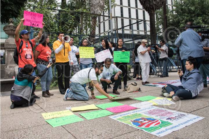 CIUDAD DE MÉXICO, 05SEPTIEMBRE2017.- Familiares y miembros de organizaciones sociales en defensa de los deportados mexicanos, protestaron a las afueras de la Embajada de Estados Unidos en México, tras el anuncio por parte del gobierno norteamericano, de cancelar el programa de Acción Diferida para los Llegados en la Infancia (DACA), el cual afecta directamente en la deportación de los “dreamers” (soñadores), quienes entraron a Estados Unidos siendo menores de edad y de forma indocumentada, pero son parte activa de la economía de dicho país. FOTO: MARIO JASSO /CUARTOSCURO.COM