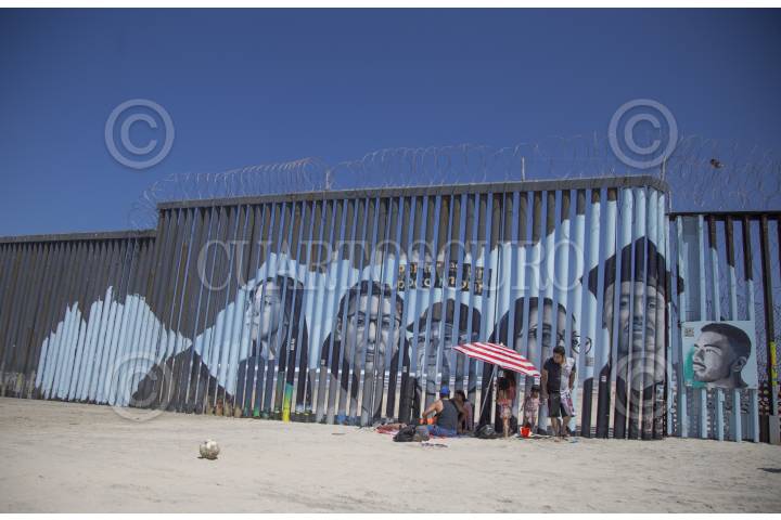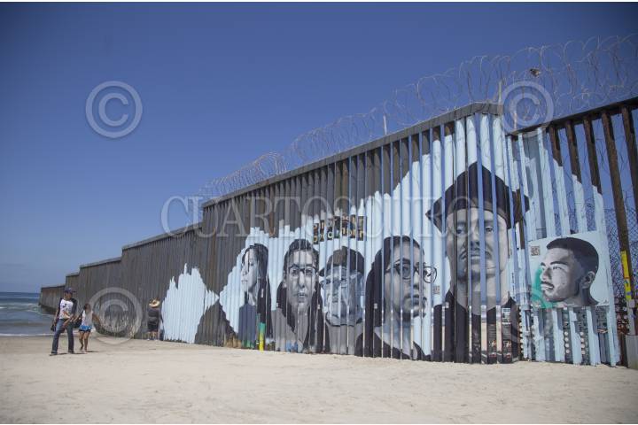 TIJUANA, BAJA CALIFORNIA, 30SEPTIEMBRE2019.- Muro fronterizo entre Estados Unidos y México el cual muestra un mural interactivo instalado por artistas visuales que tiene como propósito conocer el drama que viven siete jóvenes que llegaron a territorio estadounidense desde niños, mismos que son denominados 'dreamers’. La obra funciona mediante un Código QR que al escanearlo hace visible la historia de cada uno de ellos. FOTO: OMAR MARTÍNEZ /CUARTOSCURO.COM