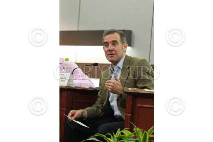 Lorenzo Córdova consejero del INE, y Armando Vázquez Ramos, presidente de The California Mexico Study Center, al finalizar la reunión con un grupo de Dreamers, que radican en Estado Unidos.