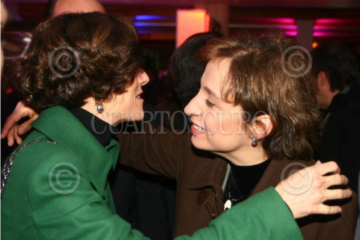 MÉXICO, D.F., 14ENERO2009.- Denise Dresser saluda a la periodista Carmen Aristegui, durante el cocktail con motivo de su regreso de la comunicadora a la radio, en el 102.5 de MVS noticias. FOTO: SAÚL LÓPEZ/CUARTOSCURO.COM