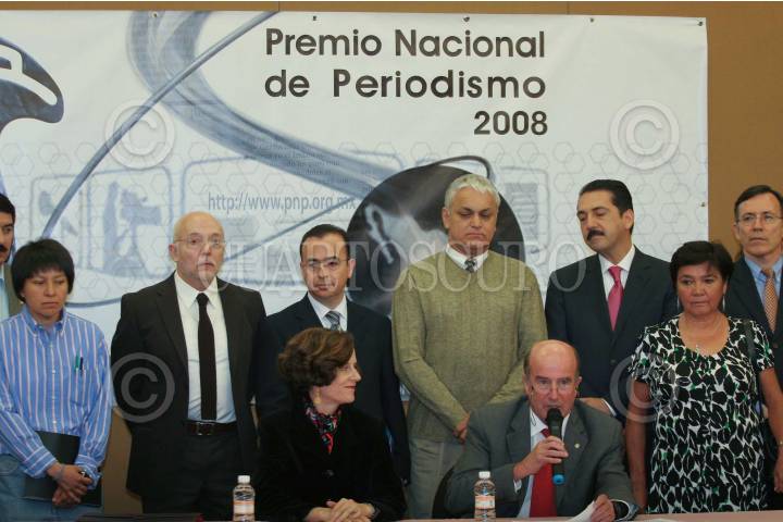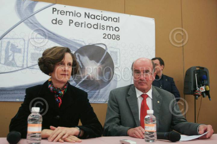 MÉXICO D.F., 20ABRIL2009.- La periodista, Denise Dresser, presidenta del jurado acompañada de José Morales Orozco Rector del la Universidad Iberoamericana e integrantes del jurado dieron a conocer la lista de los premiados de la VII Edición Ciudadana del Premio Nacional de Periodismo. FOTO: IVAN MENDEZ/CUARTOSCURO.COM