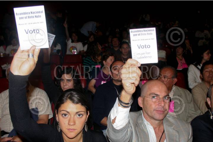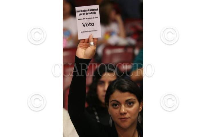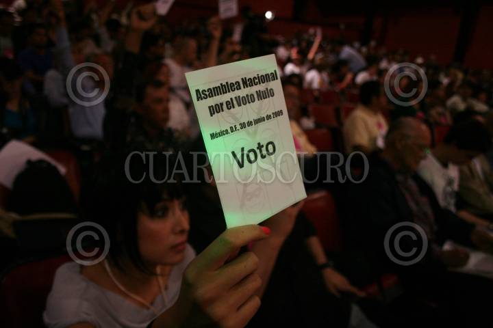 MÉXICO, D.F., 30JUNIO2009.- Organizaciones sociales de distintos puntos del país realizaron esta tarde la asamblea nacional por el voto nulo, que se llevo acabo en el Deportivo Villa Olímpica, esta asamblea tiene como propósito refrendar su postura para anular su voto en las próximas elecciones del 5 de julio. FOTO: RICARDO CASTELAN/CUARTOSCURO.COM
