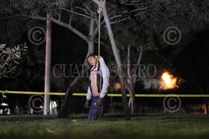 MÉXICO D.F. 27JULIO2013.- Un joven, quien respondía en vida al nombre de Francisco Javier Ramírez Martínez 22 años, decide quitarse la vida colgándose de un árbol sobre el camellón que divide los sentidos de circulación de Periférico a la altura de la calle Telecomunicaciones en la colonia Leyes de Reforma 2ª sección. FOTO: LUIS CARBAYO /CUARTOSCURO.COM