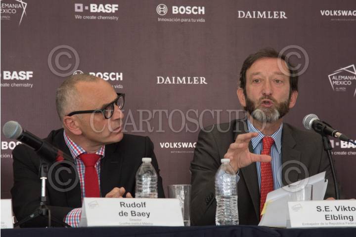 CIUDAD DE MÉXICO, 07JUNIO2017.- Viktor, Elbling, embajador de Alemania en México, y Rudolf deBaey, director de Goethe Institut México, acompañados de diferentes personalidades de ambos paises, encabezaron la conferencia de prensa para dar a conocer los detalles de la clausura del Año Dual Alemania México. FOTO: TERCERO DÍAZ /CUARTOSCURO.COM