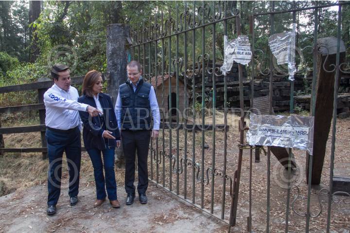 VALLE DE BRAVO, ESTADO DE MÉXICO, 18ABRIL2017.- Ricardo Anaya, presidente nacional del PAN, Josefina Vázquez Mota, candidata a la Gubernatura del Estado, Victor Hugo Sondón, presidente del blanquiazul estaral, ofrecieron conferencia de prensa en el rancho Las Mesas, propiedad del ex gobernador Javier Duarte, detenido el fin de semana en Guatemala. FOTO: ISAAC ESQUIVEL /CUARTOSCURO.COM