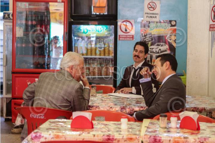 CIUDAD DE MÉXICO, 22JULIO2017.- Marco Antonio del Toro, y su equipo de trbajo de abogados del ex gobernador de Veracruz, Javier Duarte, almuerzan en una fonda frente al Reclusorio Norte durante un receso de la audiencia. FOTO: TERCERO DÍAZ /CUARTOSCURO.COM