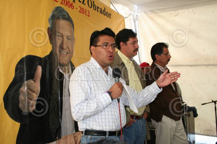 MÈXICO, D.F. 11AGOSTO2006.- Gerardo Frenàndez Noroña, Jesùs Ortega y Horacio Duarte en conferencia en el Zòcalo afirmaron que la manifestaciòn frenta a Televisa en producto del descontento de los ciudadanos y que el PRD es ajeno a esta protesta. FOTO: Paola Hidalgo/CUARTOSCURO.COM