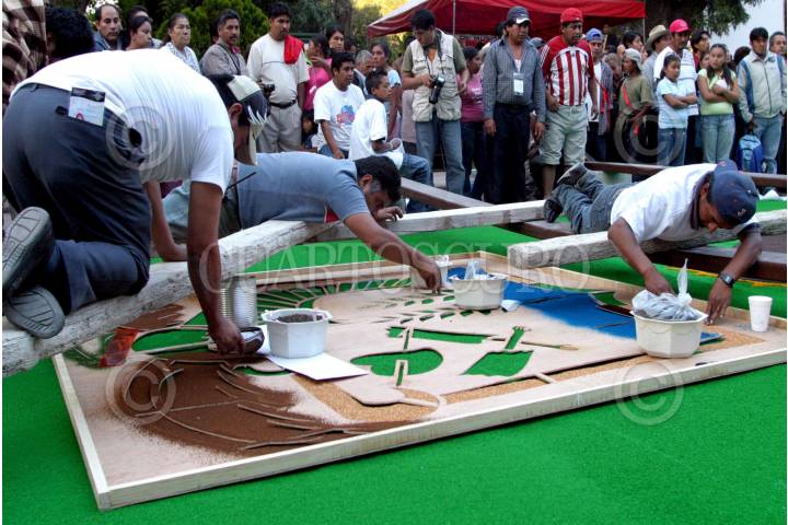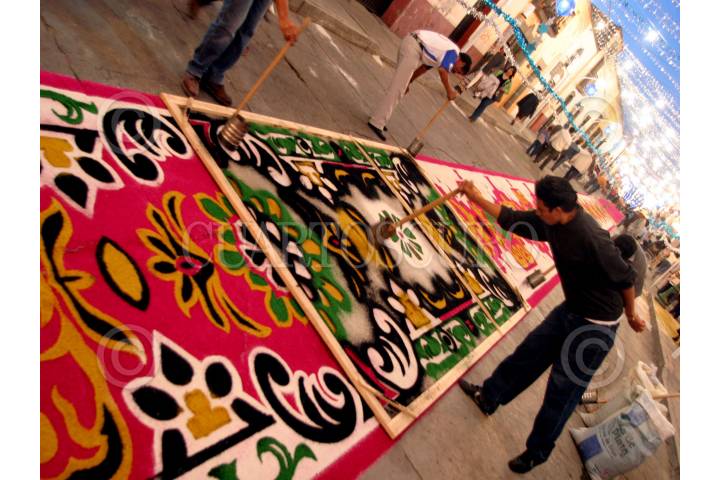 HUAMANTLA, TLAXCALA, 15 AGOSTO 2007.- La noche de ayer se realizó la tradicional fiesta de “la noche que nadie duerme” donde alfombristas de varias partes del mundo se reúnen en esta ocasión en la ciudad de Huamantla para elaborar el llamado “arte efímero” que consiste en la elaboración de alfombras de diferentes materiales y festejar a Vvirgen de la Caridad. FOTO: CARLOS SEOANE/CUARTOSCURO.COM