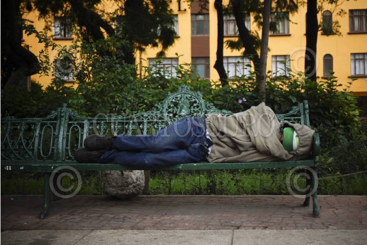 MÉXICO, D.F., 31AGOSTO2013.- Un hombre duerme en el banco de un parque, como muchos otros hombres, en muchos otros bancos, en la Ciudad de México. FOTO: PEDRO VALTIERRA ANZA /CUARTOSCURO.COM