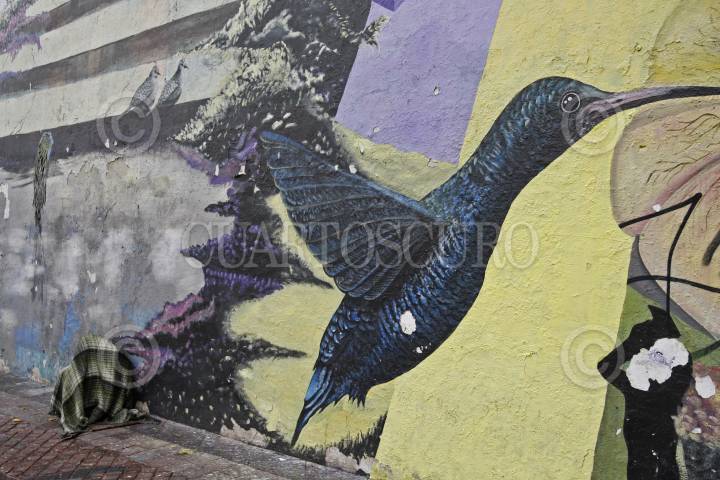 GUADALAJARA, JALISCO, 19JUNIO2015.-Un Indigente duerme esta mañana fría y lluviosa en la explanada de la Rambla Cataluña que se encuentra en la calle Escorza justo frente al Paraninfo de la Universidad de Guadalajara UdeG. FOTO: FERNANDO CARRANZA GARCIA / CUARTOSCURO.COM
