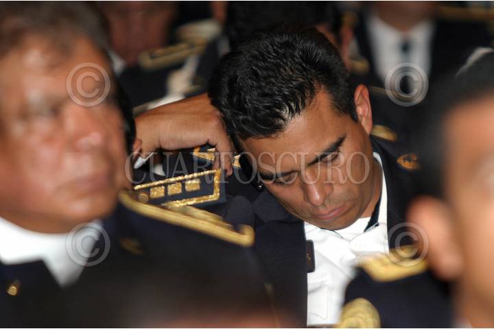 MÉXICO D.F. 13 JUNIO2006.- Un policía que asistió al foro Internacional "Narco Menudeo Acciones y Reflexciones" duerme, mientra se los ponenetes exponen sus temas acerca de la problematica del narco menudeo. FOTO: Guillermo Perea/CUARTOSCURO.COM