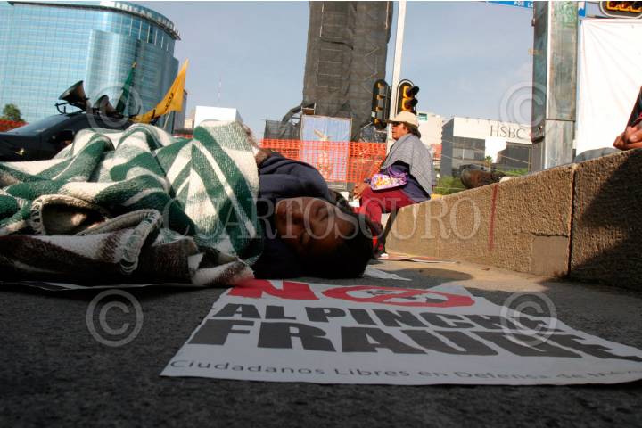 MÉXICO D.F. 31JULIO2006.- Campamentos de simpatizantes de Andrés Manuel López Obrador en que exigen el coteo voto por voto en por el supuesto fraude en las pasadas elecciones del 2 de Julio, esto en Avernida Reforma. Un simpatizante duerme sobre el pavimento sobre la avenida. FOTO: Pedro Marrufo/CUARTOSCURO.COM