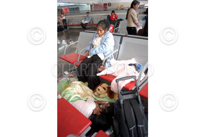 MÉXICO D.F. 07ENERO2007.- Una familia duerme en las bancas de la sala de espera, antes de la salida de su autobús, después de pasar la temporada decembrina en la capital, esto en la terminal de autobuses de TAPO. FOTO: GUILLERMO PEREA /CUARTOSCURO.COM