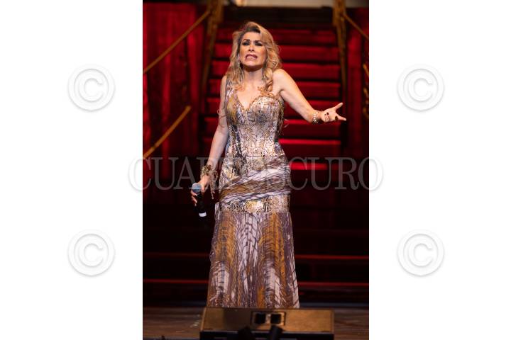 CIUDAD DE MÉXICO, 23AGOSTO2024.- La reconocida cantante Dulce durante su interpretación en el estreno de la obra musical “Perfume de Gardenias” en el Teatro San Rafael. FOTO: ALICE MORITZ/CUARTOSCURO.COM