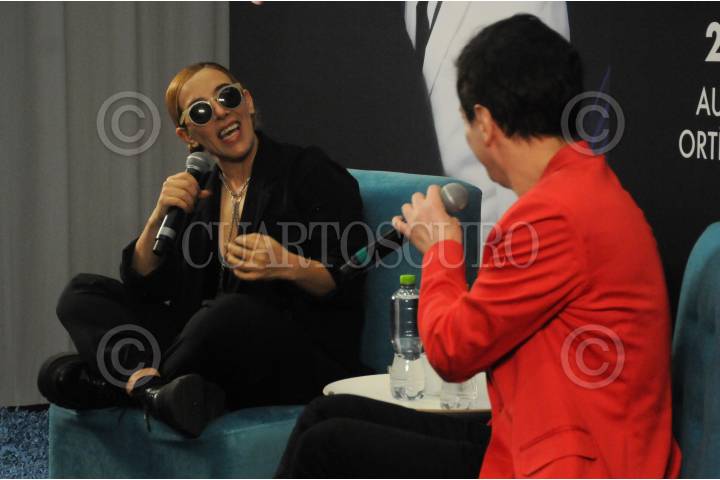 CIUDAD DE MÉXICO, 08NOVIEMBRE2023.- Antón Carreño durante la conferencia de prensa con el dueto español "Taburete", banda que se presentará en el Frontón México para dar muestrab de su mas reciente producción "Matadero 5". FOTO: EDGAR NEGRETE LIRA/CUARTOSCURO.COM
