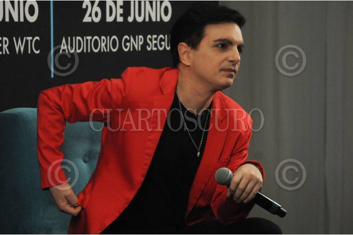 CIUDAD DE MÉXICO, 08NOVIEMBRE2023.- Willy Bárcenas durante la conferencia de prensa con el dueto español "Taburete", banda que se presentará en el Frontón México para dar muestrab de su mas reciente producción "Matadero 5". FOTO: EDGAR NEGRETE LIRA/CUARTOSCURO.COM