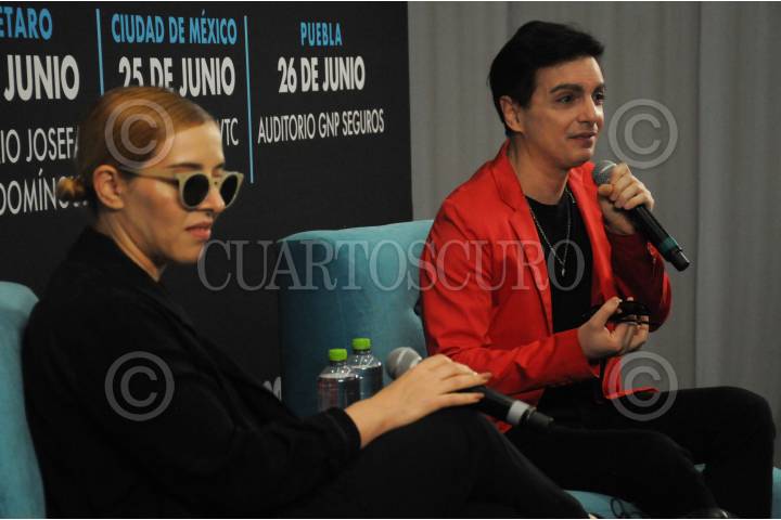 CIUDAD DE MÉXICO, 08NOVIEMBRE2023.- Antón Carreño Y Willy Bárcenas durante la conferencia de prensa con el dueto español "Taburete", banda que se presentará en el Frontón México para dar muestrab de su mas reciente producción "Matadero 5". FOTO: EDGAR NEGRETE LIRA/CUARTOSCURO.COM