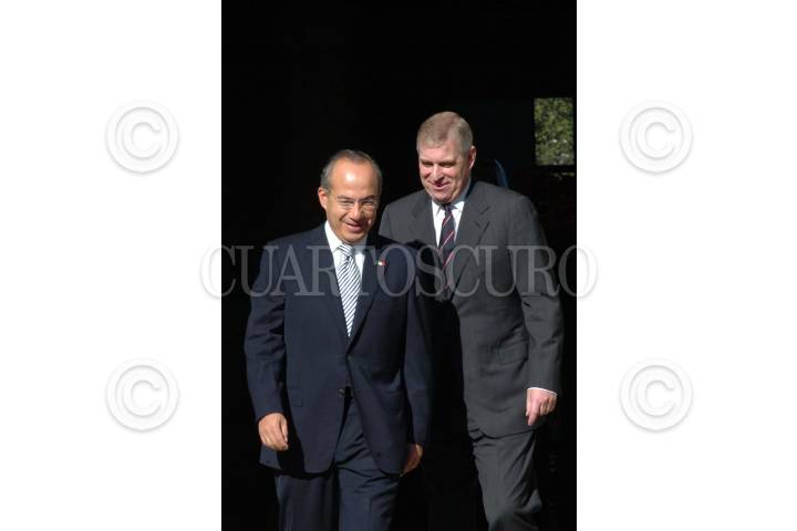 MÉXICO, D.F. 12FEBRERO2010.- Felipe Calderón Hinojosa, presidente de México, recibió en la presidencia oficial de Los Pinos al príncipe Andrés, duque de York, de la Gran Bretaña. FOTO: IVAN MÉNDEZ/CUARTOSCURO.COM