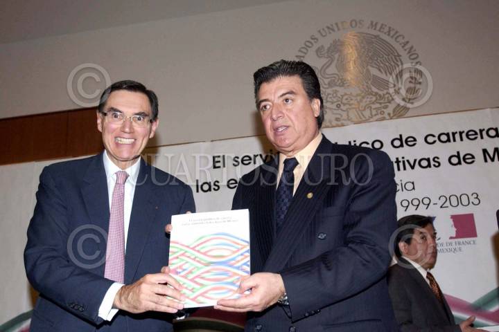 MEXICO, D.F. 27ENERO2005.- Richard Duque, Embajador de Francia en México y Felipe González González, Subsecretario de Gobernación después de la presentación del libro "El Servicio Civil de Carrera en las Entidades Federativas de México. La experiencia Franco-Mexicana 1992-2003". Dicho acto se llevó a cabo en el salón Revolución de esta dependencia. FOTO: Javier Tapia/CUARTOSCURO.COM