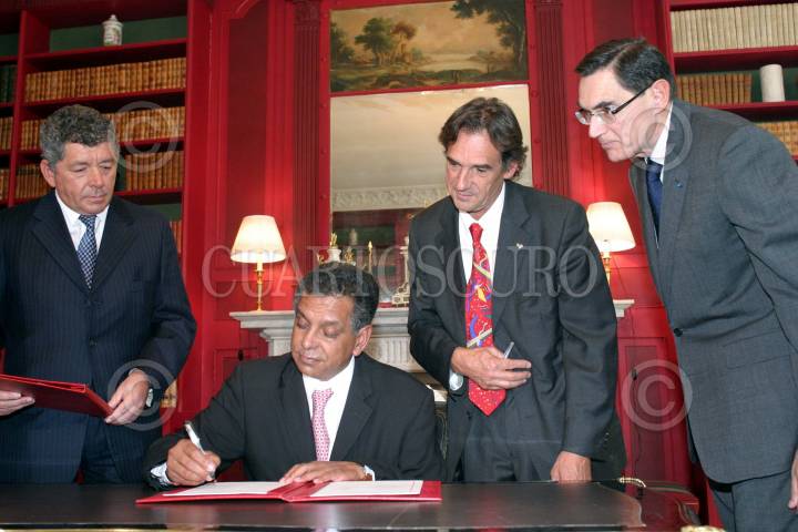 MEXICO, D.F., 06ABRIL2005.- Fidel Herrera, gobernador de Veracruz y Richard Duque, embajador de Francia en México, firmaron un acuerdo en materia educativa y cultural en la sede de la embaja de francesa. FOTO: Moisés Pablo/CUARTOSCURO.COM