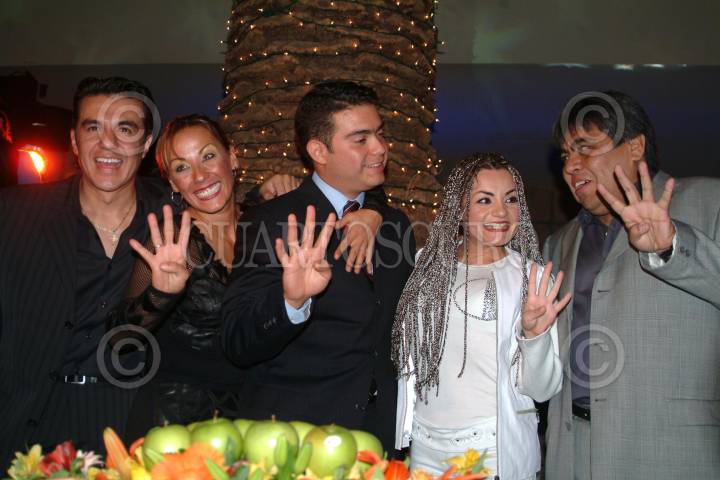 MEXICO, D.F 30SEPTIEMBRE2004.- Adrián Uribe, Consuelo Duval, Reynaldo López (productor), Lorena de la Garza y Miguel Galván festejaron cuatro años al aire del programa "La hora Pico". FOTO: Iván Stephens/CUARTOSCURO.COM