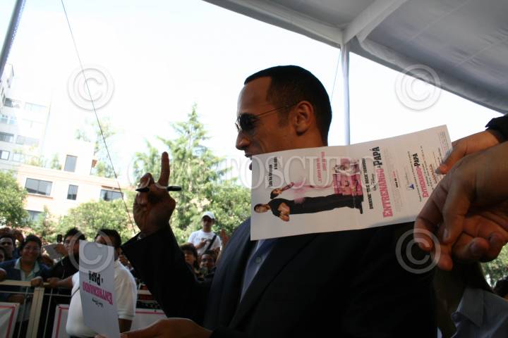 MÉXICO,D,F.,07OCTUBRE2007.- El actor Dwayne "The Rock" Johnson,da autógrafos a los asistentes durante la alfomfra roja de la película Entrenado a papá. FOTO:SASHENKA GUTIERREZ/CUARTOSCURO.COM