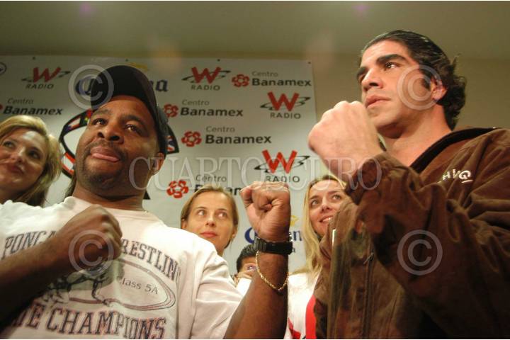 México D.F. 08 Enero 2004.- Frente a frente Dwayne Swift y Jorge Kahwagi durante la ceremonia de pesaje para la pelea del peso crucero del CMB. FOTO: Germán Romero/CUARTOSCURO.COM