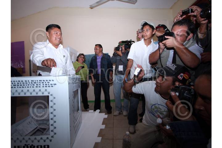 TULUM,QUINTANA ROO., 01FEBRERO 2009.-Marciano Dzul Caamal candidato del PRI a la presidencia municpal de Tulum, ejerce su voto este dia que se realiza por primera vez comicios desde que fue nombrado 9 municipio del estado de Quintana Roo. FOTO:ELIZABETH RUIZ/CUARTOSCURO.COM