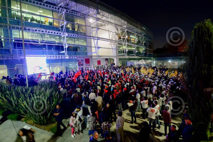 TOLUCA, ESTADO DE MÉXICO, 25ABRIL2017.- Aspectos generales de seguidores del PRD y PT que se reunieron en la explanada del edificio del IEEM para poder presenciar el debate que se está llevando acabo entre los candidatos a la gubernatura del Estado de México. FOTO: ARTEMIO GUERRA BAZ /CUARTOSCURO.COM