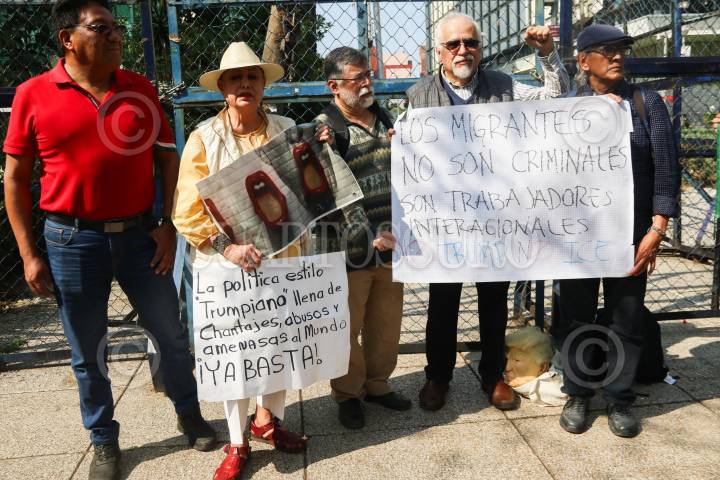 CIUDAD DE MÉXICO. 03FEBRERO2025.- Red Binacional contra Trump, realizaron un mitin frente a la embajada de Estados Unidos de América; demandaron que el paisa vecino de trato digno a los conacionales que encuentra trabajado y radicando en EEUU. FOTO: VICTORIA VALTIERRA/CUARTOSCURO.COM