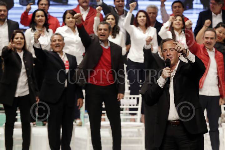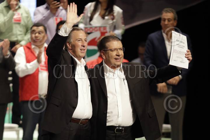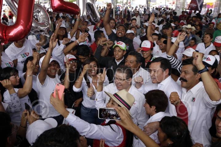 PUEBLA, PUEBLA, 22JUNIO2018.- El candidato del PRI a la presidencia de la república, José Antonio Meade, acompañó a Enrique Doger; candidato a la gobernatura de Puebla, a su cierre de campaña en evento realizado con Antorcha Campesina en el centro expositor de la ciudad de Puebla. FOTO: HILDA RÍOS/CUARTOSCURO.COM