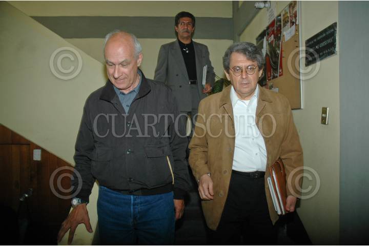 MÉXICO, D.F., 09MAYO2008.- Gilberto Lopéz y el escritor Carlos Montemayor al termino de una reunión de mediadores para establecer un dialogo entre el EPR y el gobierno federal. FOTO: RODOLFO ANGULO/CUARTOSCURO.COM