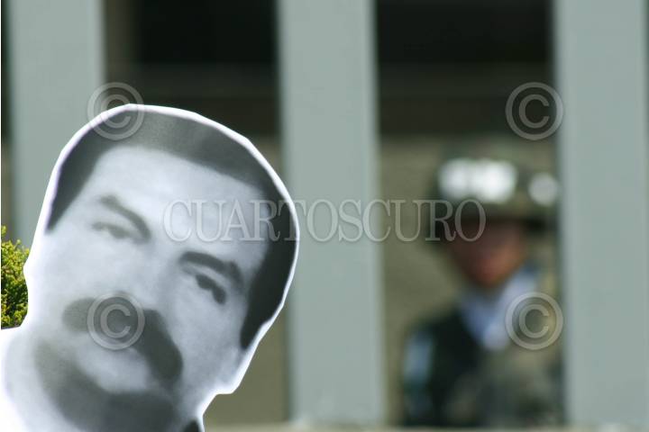 MÉXICO, D.F., 25MAYO2008.- Amigos y familiares de Edmundo Reyes, preso político integrante del Ejercito Popular Revolucionario, se manifestaron frente las instalaciones del Campo Militar 1, para reclamar la liberación del mismo, a un año de su desaparición. FOTO: RICARDO CASTELAN/CUARTOSCURO.COM