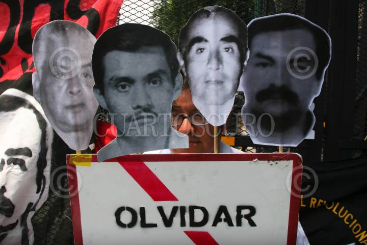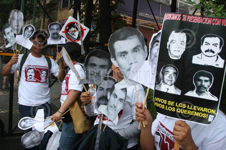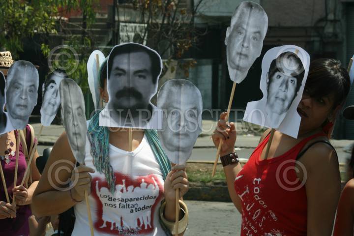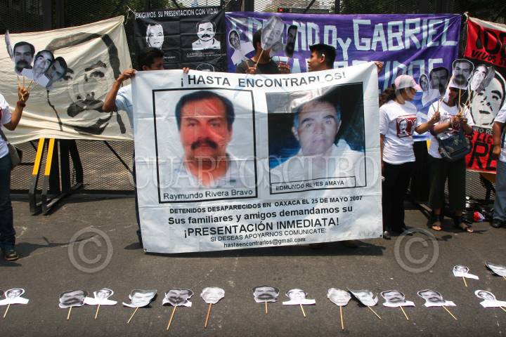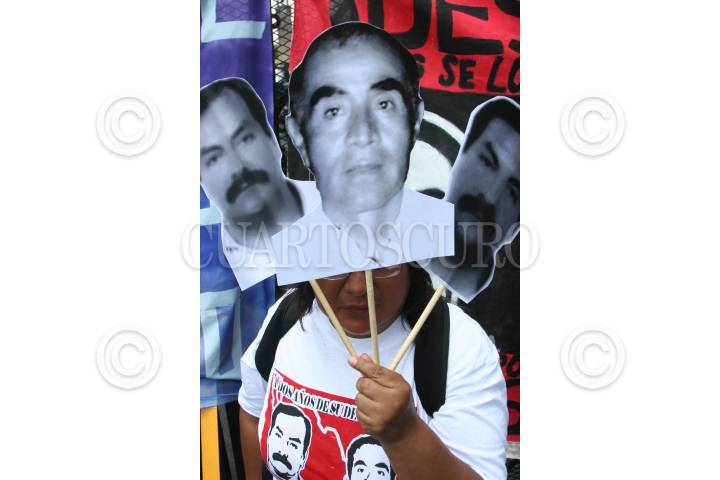 MÉXICO, D.F., 25MAYO2009.- Integrantes del Comité Nacional por la presentación de las y los desaparecidos, se manifestaron a las afueras de la Secretaria de Gobernación para pedir la liberación de Raymundo Rivera Bravo, Edmundo Reyes Maya, Francisco Paredes Ruiz y Alberto Cruz Sanchez quienes son presos políticos pertenecientes al (EPR) Ejercito Popular Revolucionario. FOTO: RICARDO CASTELAN/CUARTOSCURO.COM