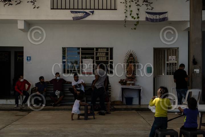 Migrantes en transito toman un descanso de un par de días en el Albergue Betania ubicado en Salto de Agua, Chiapas.