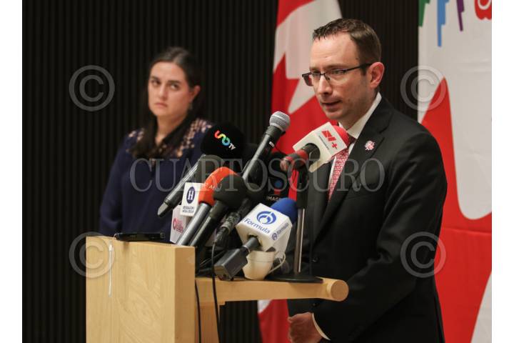 CIUDAD DE MÉXICO, 29FEBRERO2024.- Voceros de la embajada de Canadá ofrecieron conferencia de prensa para dar detalles sobre el cambio en requerimientos migratorios en los que a partir de esta noche 22:30 se cancelaran los trámites del ETA y se pedirá visa la cual de turista se puede pedir en línea. FOTO: ANDREA MURCIA /CUARTOSCURO.COM
