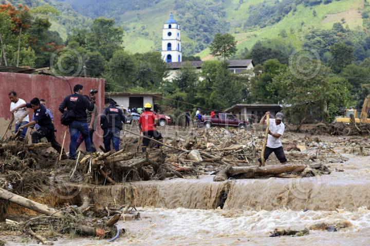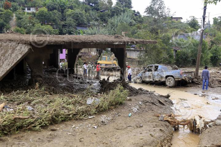 XALTEPEC, PUEBLA, 08AGOSTO2016.- Elementos de protección civil, bomberos, policía y ejército mexicano, laboran en los trabajos de rescate de desaparecidos y limpieza de la zona de Xaltepec en el municipio de Huauchinango tras el paso del huracán Earl por Puebla, que dejó como resultado mas de 30 muertos y cientos de afectados. FOTO: HILDA RÍOS /CUARTOSCURO.COM