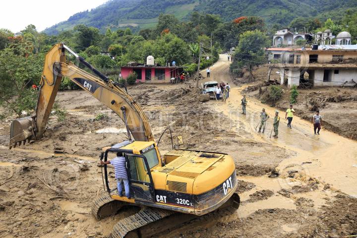 XALTEPEC, PUEBLA, 09AGOSTO2016.- Elementos del ejército, protección civil y bomberos laboran en apoyo a la población afectada por el paso de la tormenta tropical Earl, en donde una avalancha de lodo sepultó varios hogares en la pequeña comunidad de Xaltepec. FOTO: HILDA RÍOS /CUARTOSCURO.COM
