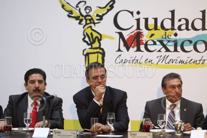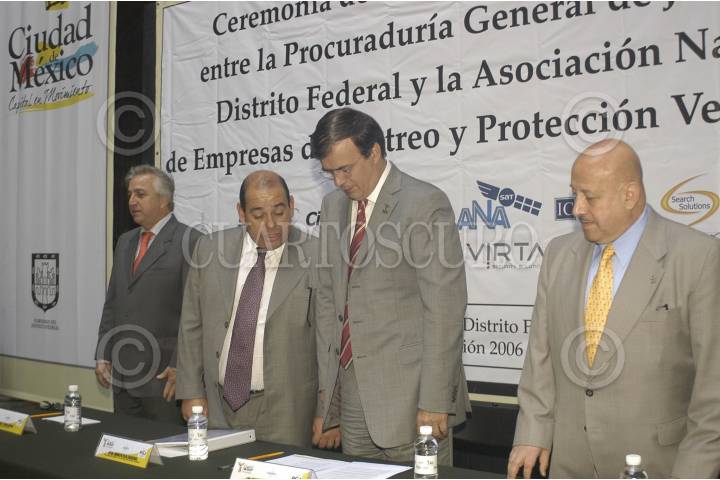 MÉXICO,D,F.,28NOVIEMBRE2007.- Rodolfo Felix Pocurador de justicia del distrito federal,Marcelo Ebrard Casaubon jefe de gobierno del distrito federal, Amelio Gomez jefe de la policia Judicial firman el convenio de colaboración dela PGJDF y la asociación de rastreo y protección FOTO: IVAN MENDEZ/CUARTOSCURO.COM