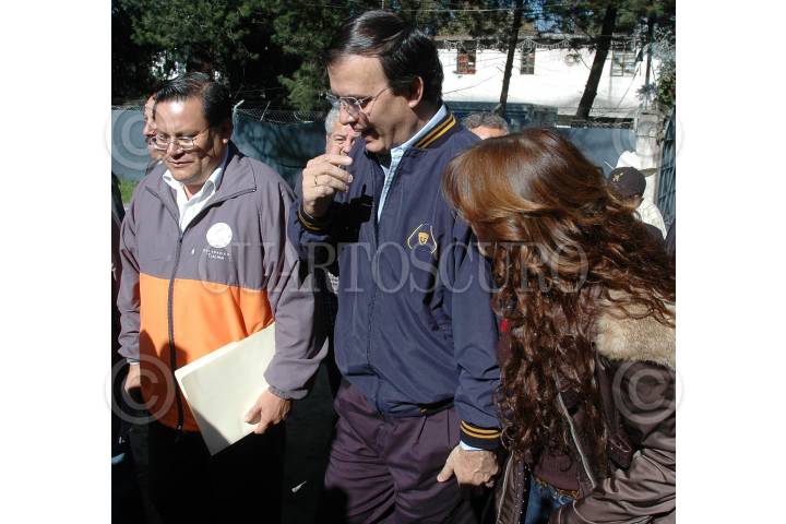 MÉXICO D.F., 08DICIEMBRE2007.- El delegado de Tlalpan Guillermo Sanchéz Torres, el jefe de gobierno Marcelo Ebard acompañado de su esposa Mariagna Prats s su llegada al evento de la colocacion de la primera piedra del DIF-Tlalpan en San Miguel Ajusco. FOTO: RODOLFO ANGULO/CUARTOSCURO.COM